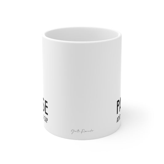 Self-Care "Pause and take a sip" White Ceramic Mug, 11oz