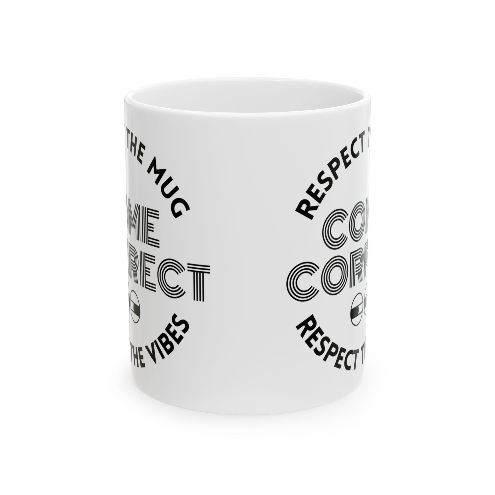 MugMood "Respect the Mug, Respect the Vibes, Come Correct" Text White Ceramic Mug, 11oz