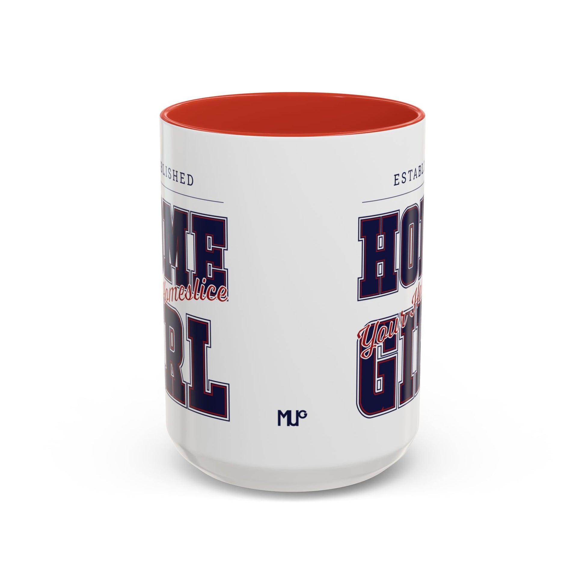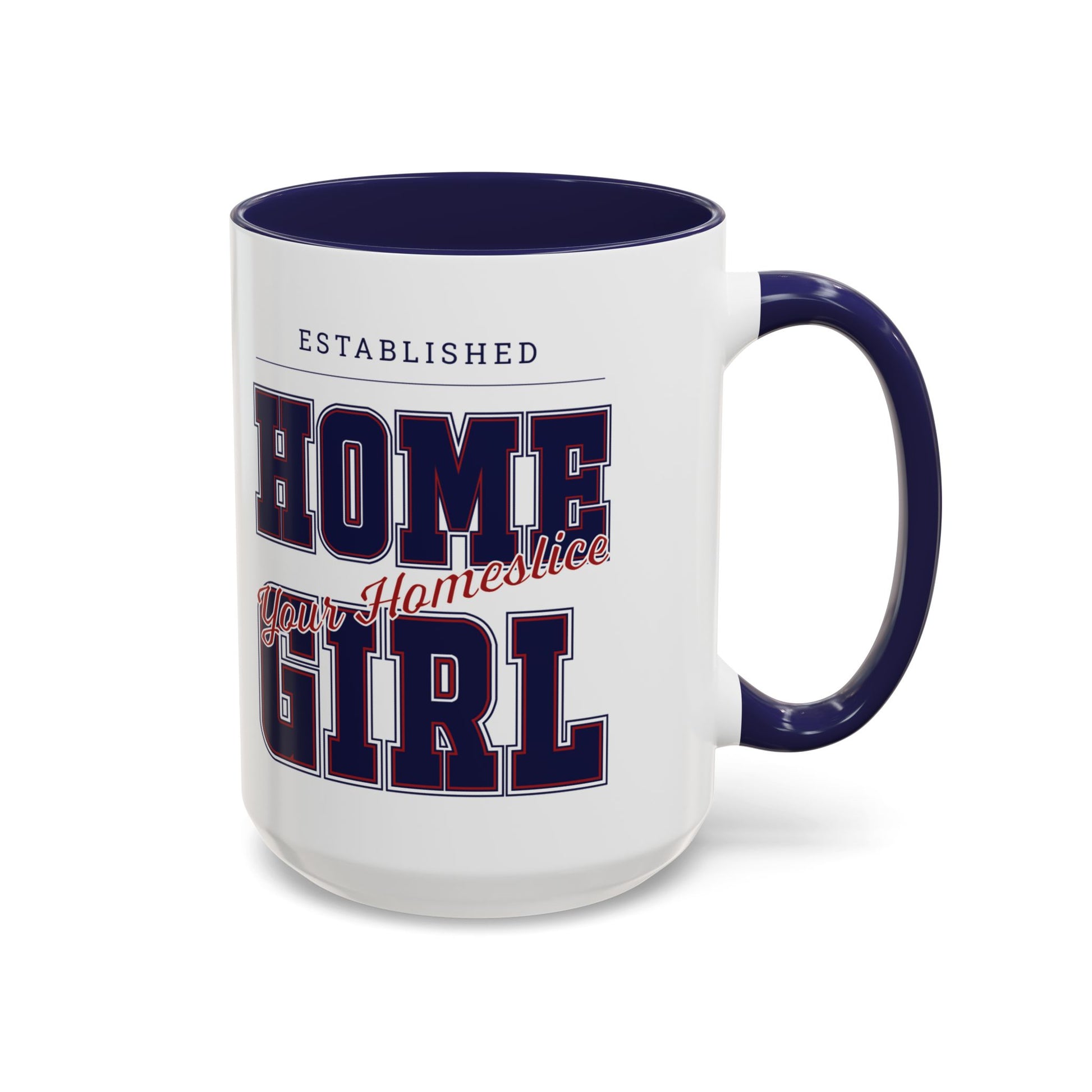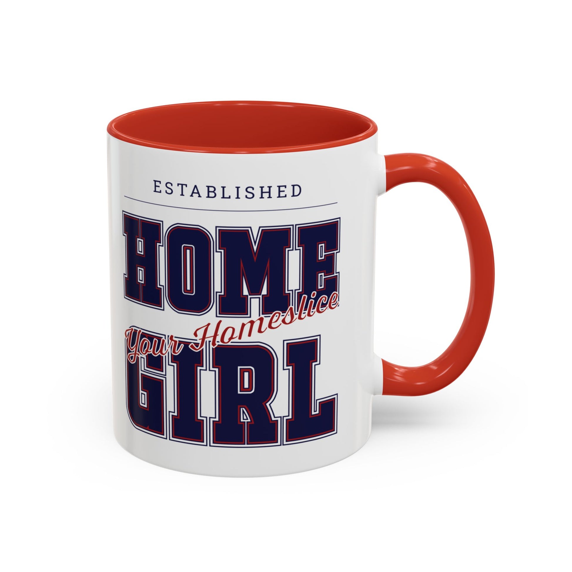 MugMood "Established Homegirl, your homeslice" Red or Blue Accent Ceramic Mug, 11oz, 15oz