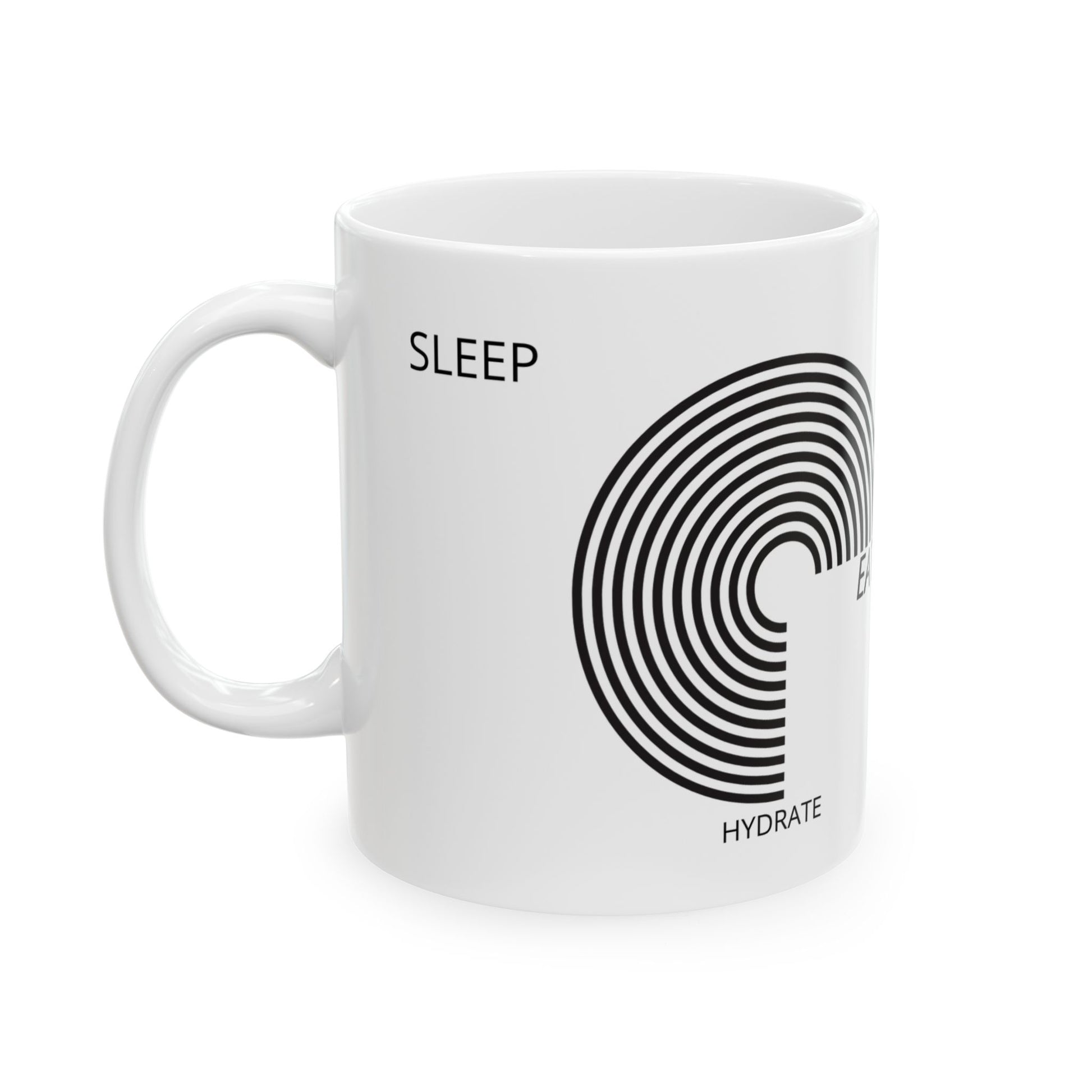 "Sleep, Eat, Hydrate, Hug Your Pet, Repeat" Text White Ceramic Mug, 11oz