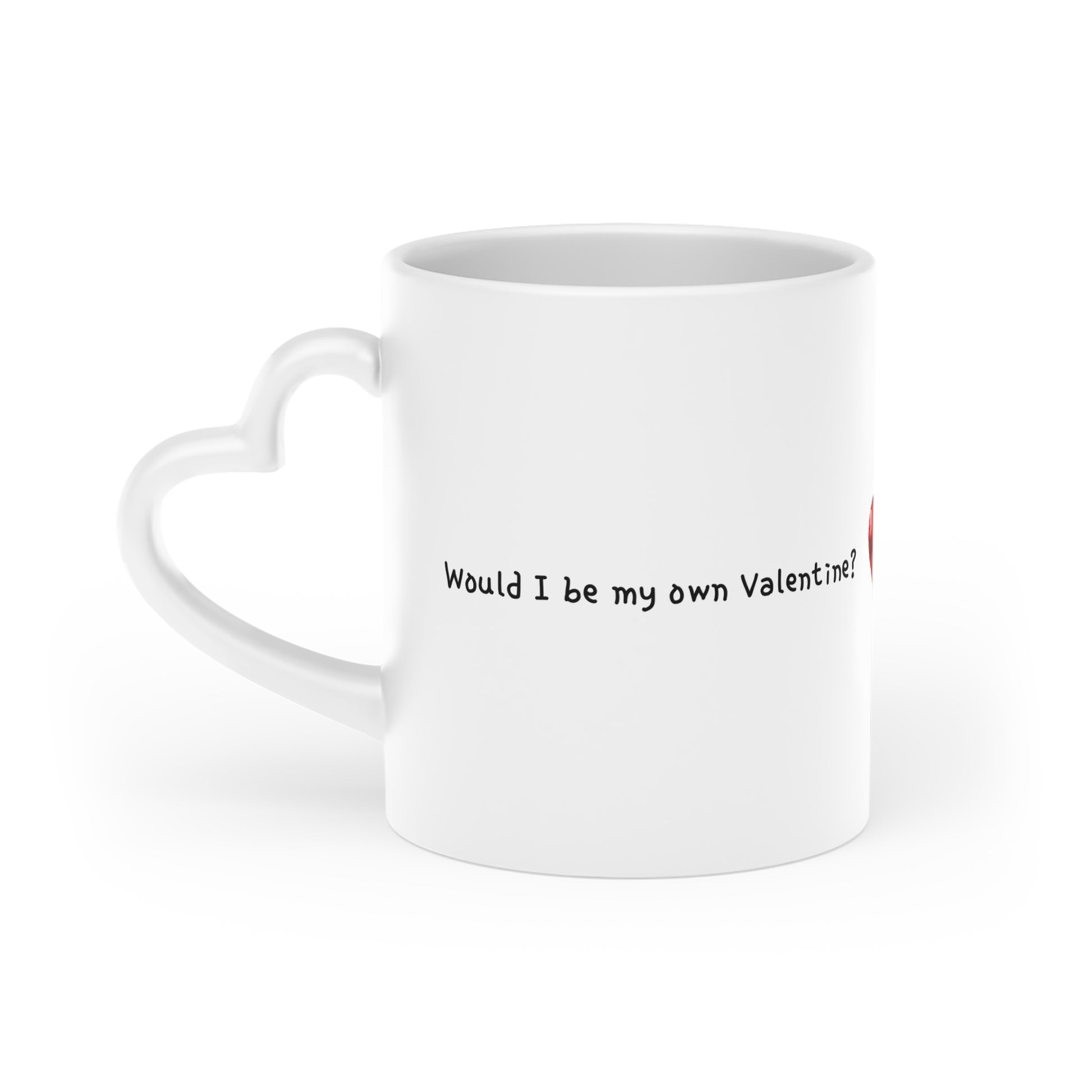 "Would I be my own Valentine?" Text Heart-Shaped Mug